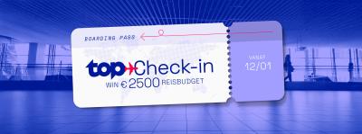 Heb je een TOP Check-In boardingpass kunnen scoren? Dan maak jij kans om op vrijdag 16 januari in de grote finale een reischeque van €2500 te winnen!