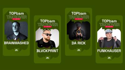 Elke vrijdagmiddag wordt TOPbam overgenomen door hard dance dj's die jou met veel plezier het weekend in 'bammen'. Vanaf 14 uur begint voor jou het weekend met TOPbam Takeover.